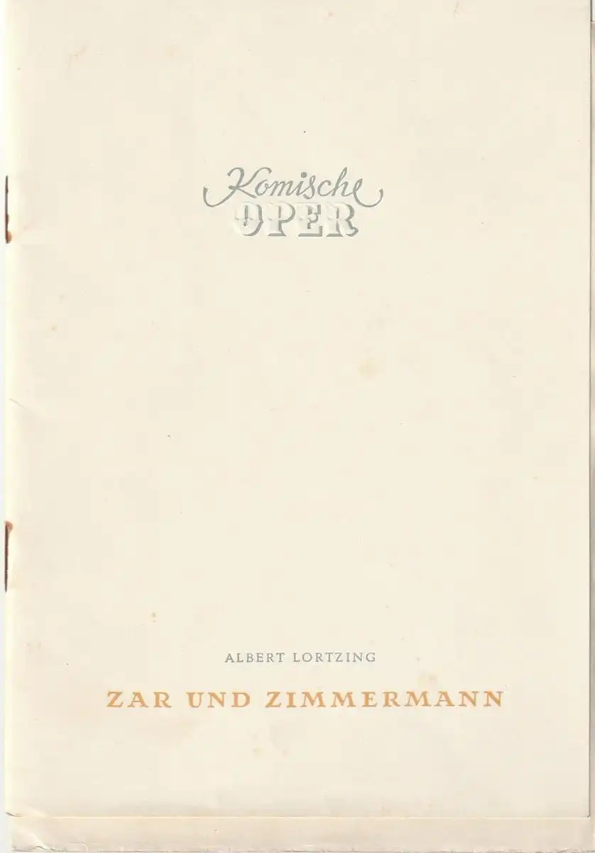 Komische Oper Berlin, Werner Otto, DEWAG-Werbung: Programmheft Albert Lortzing ZAR UND ZIMMERMANN 5. Februar 1955.