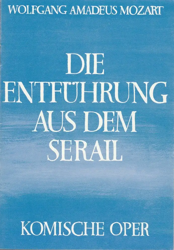 Deutsches Singspiel in drei Aufzügen. Musikalische Leitung: Rolf Reuter. Inszenierung: Harry Kupfer. Bühne: Marco Arturo Marelli. Kostüme: Eberhard Schmidt. Mitwirkende: Hans-Peter Minetti, Magda Nador, Barbara Sternberger, Michael Rabsilber, Andreas Conrad, u. a. - Theaterprogramm, Opernprogramm, Ballettprogramm, Musicalprogramm, Konzertprogramm, Theatermemorabilia, Programmhefte Sammlung, deutsche Theatergeschichte.