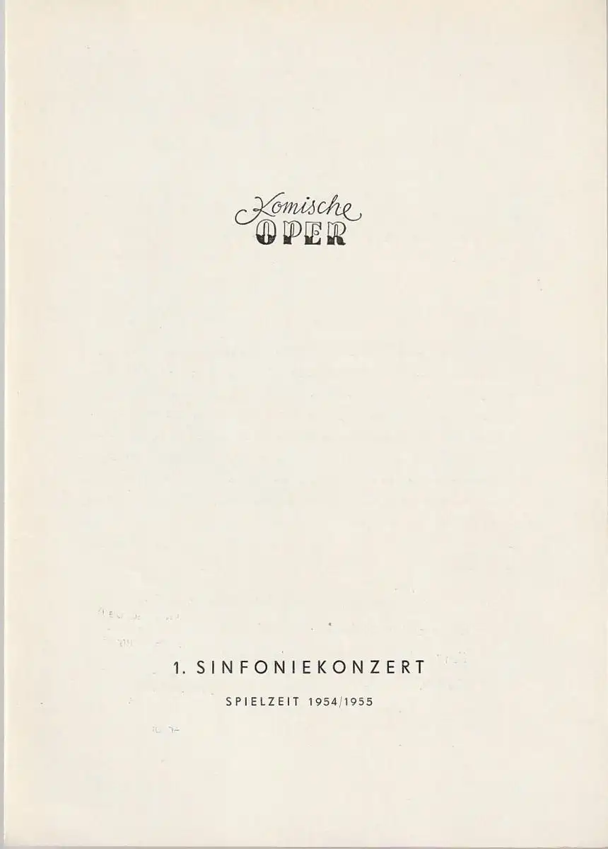 Komische Oper: Programmheft 1. SINFONIEKONZERT DES ORCHESTERS DER KOMISCHEN OPER 13. Oktober 1954 Spielzeit 1954 / 55.