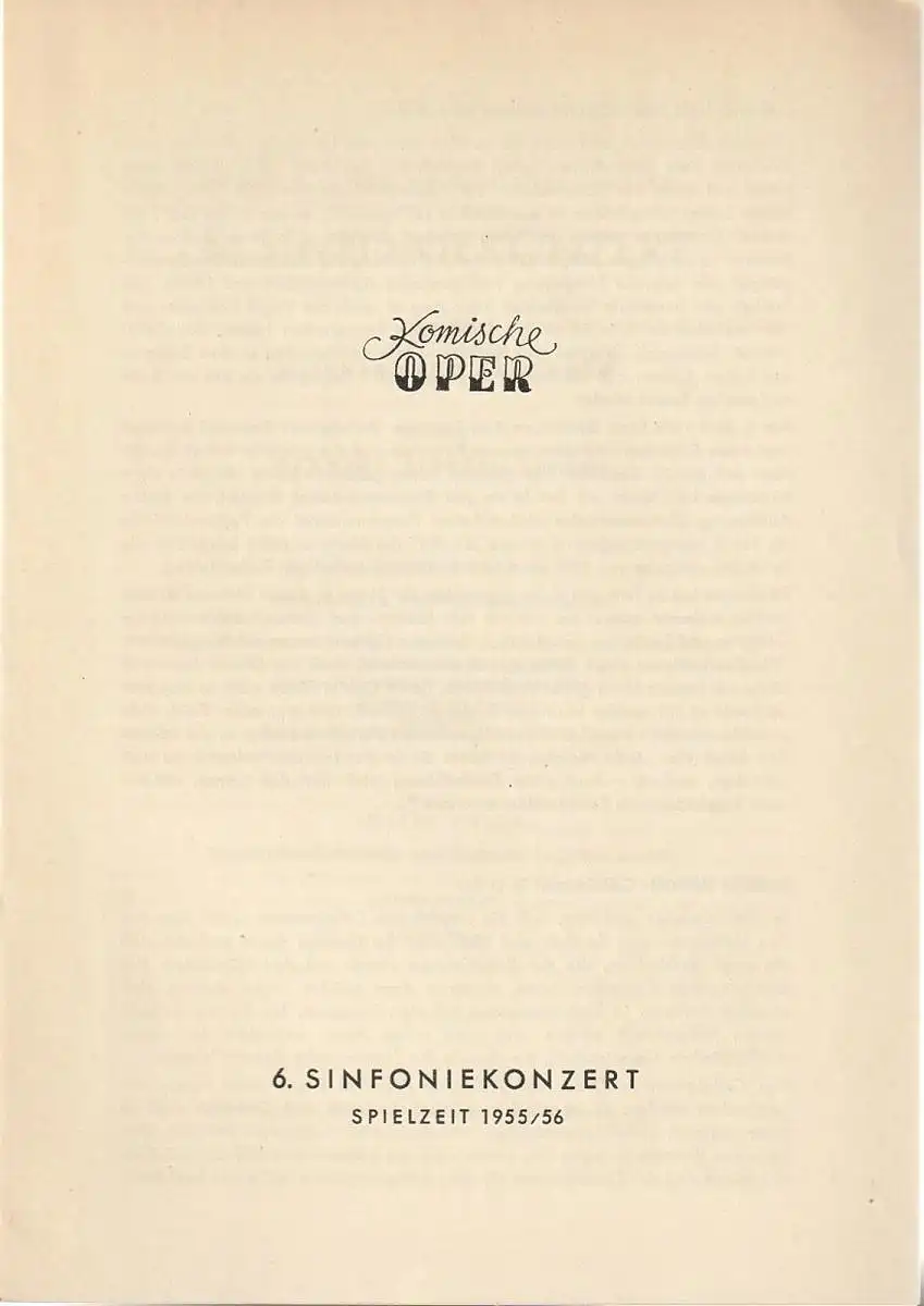 Komische Oper: Programmheft 6. SINFONIEKONZERT DES ORCHESTERS DER KOMISCHEN OPER 12. Juni 1956 Spielzeit 1955 / 56.