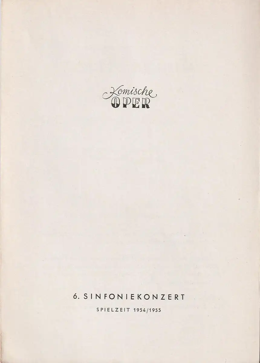 Komische Oper: Programmheft 6. SINFONIEKONZERT DES ORCHESTERS DER KOMISCHEN OPER 19. Mai 1955 Spielzeit 1954 / 55.