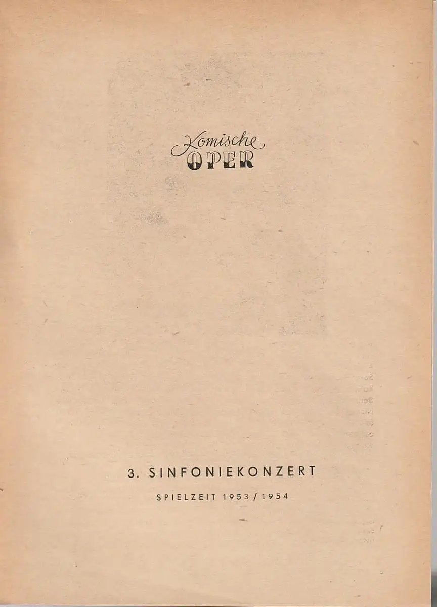 Titel: Programmheft 3. SINFONIEKONZERT DES ORCHESTERS DER KOMISCHEN OPER 27. Januar 1954 Spielzeit 1953 / 54