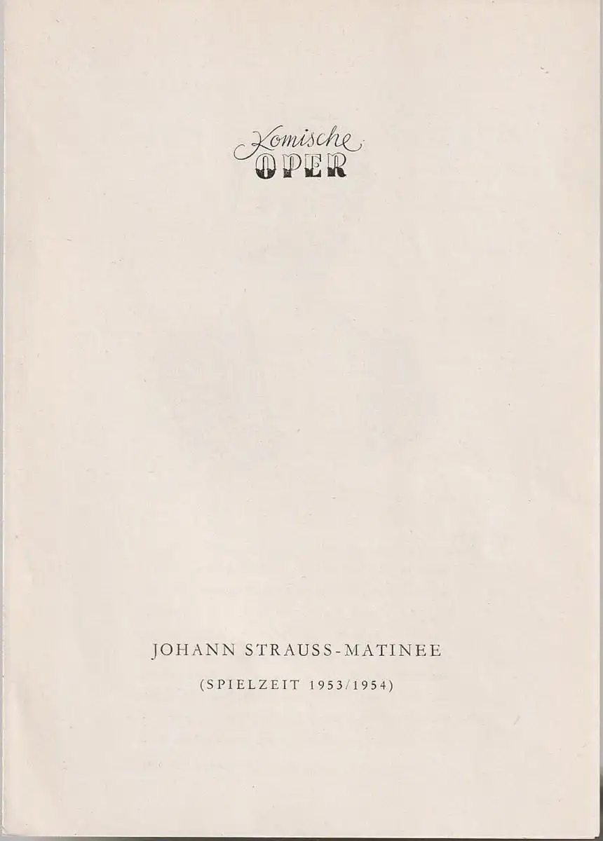 Komische Oper, W. Otto: Programmheft JOHANN-STRAUß MATINEE 10. Januar 1954 Spielzeit 1953 / 54.