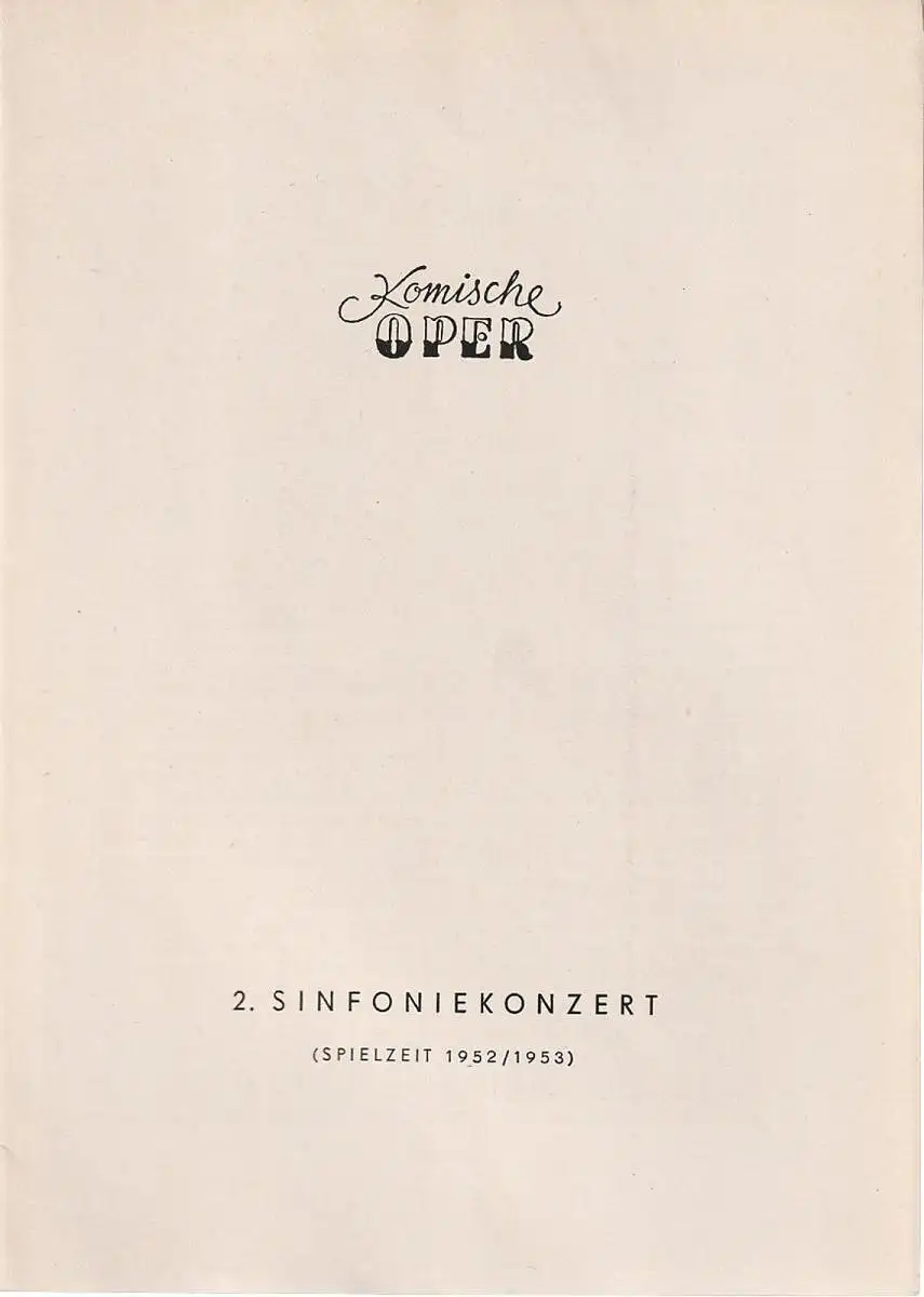 Titel: Programmheft 2. SINFONIEKONZERT DES ORCHESTERS DER KOMISCHEN OPER 4. Februar 1953 Spielzeit 1952 / 53