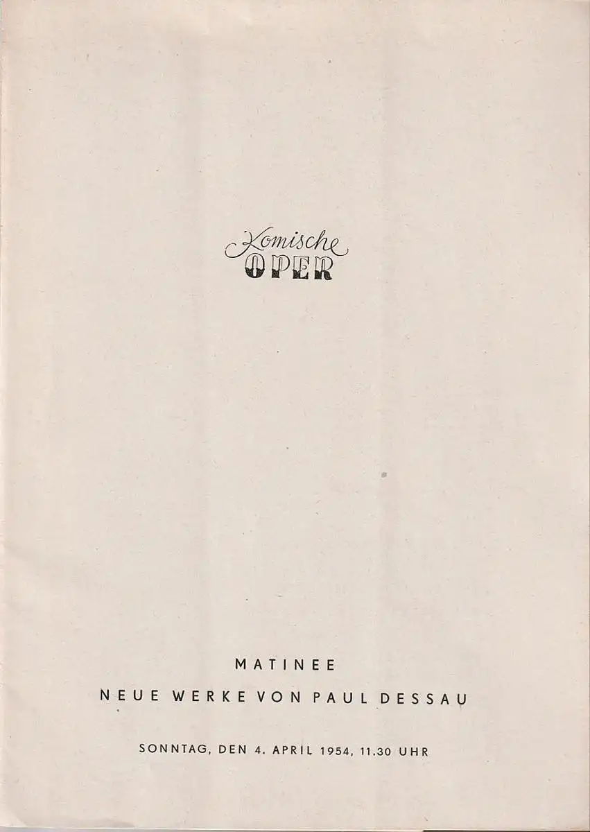 Komische Oper, Werner Otto: Programmheft Uraufführungen / Erstaufführungen MATINEE NEUE WERKE VON PAUL DESSAU 4. April 1954 Spielzeit 1953 / 54.