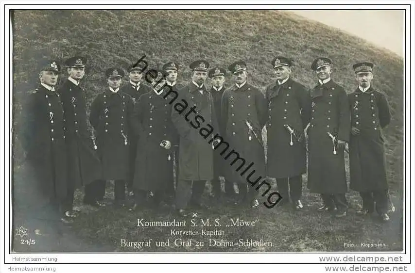 Kommandant SMS Möwe - Korvetten-Kapitän Burggraf und Graf zu Dohn-Schlodien - Rückseite beschrieben (G23502) *