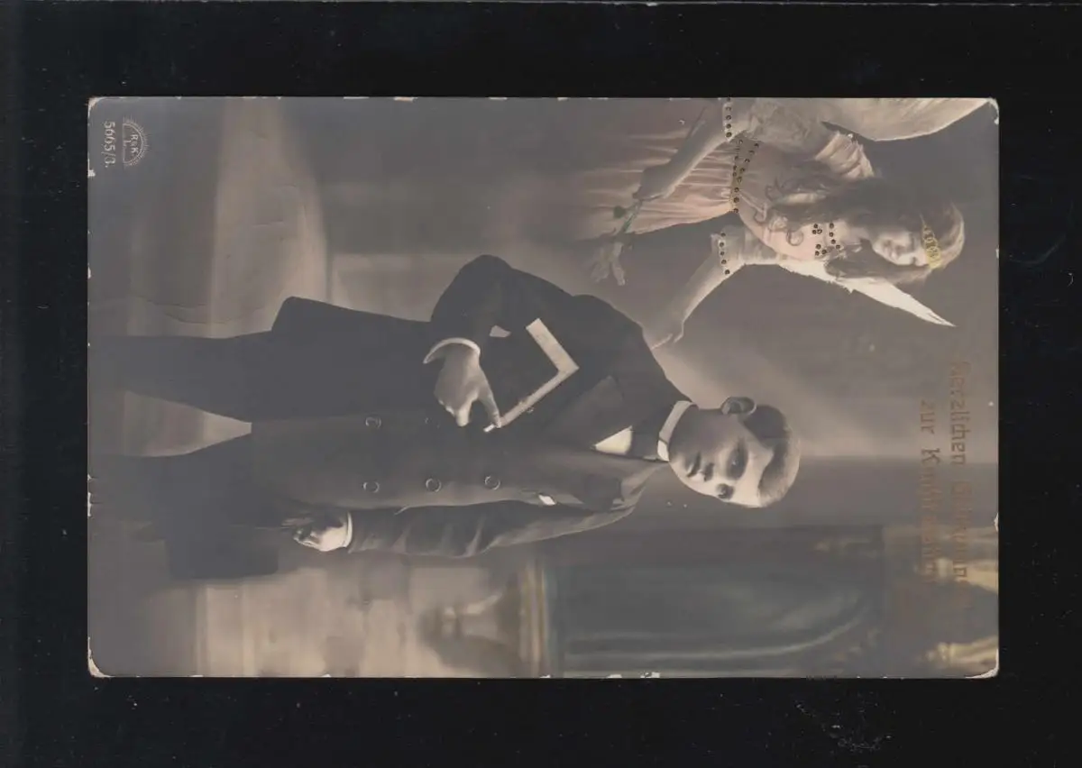 Konfirmation Glückwünsche Junge in Kirche mit Engel, Niederoderwitz 28.3.1915