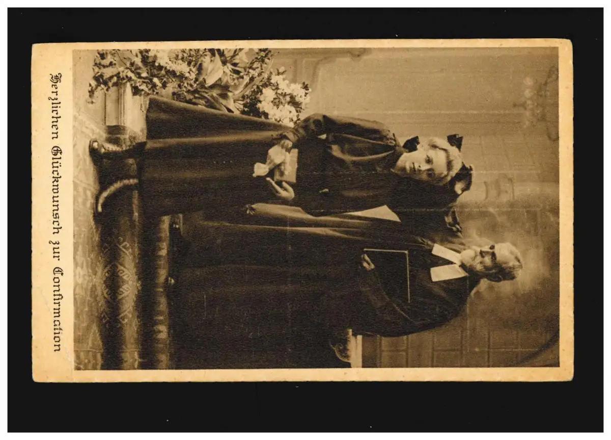 Konfirmation Pfarrer Mädchen Segnung Bibel und Blumenschmuck, ungebraucht