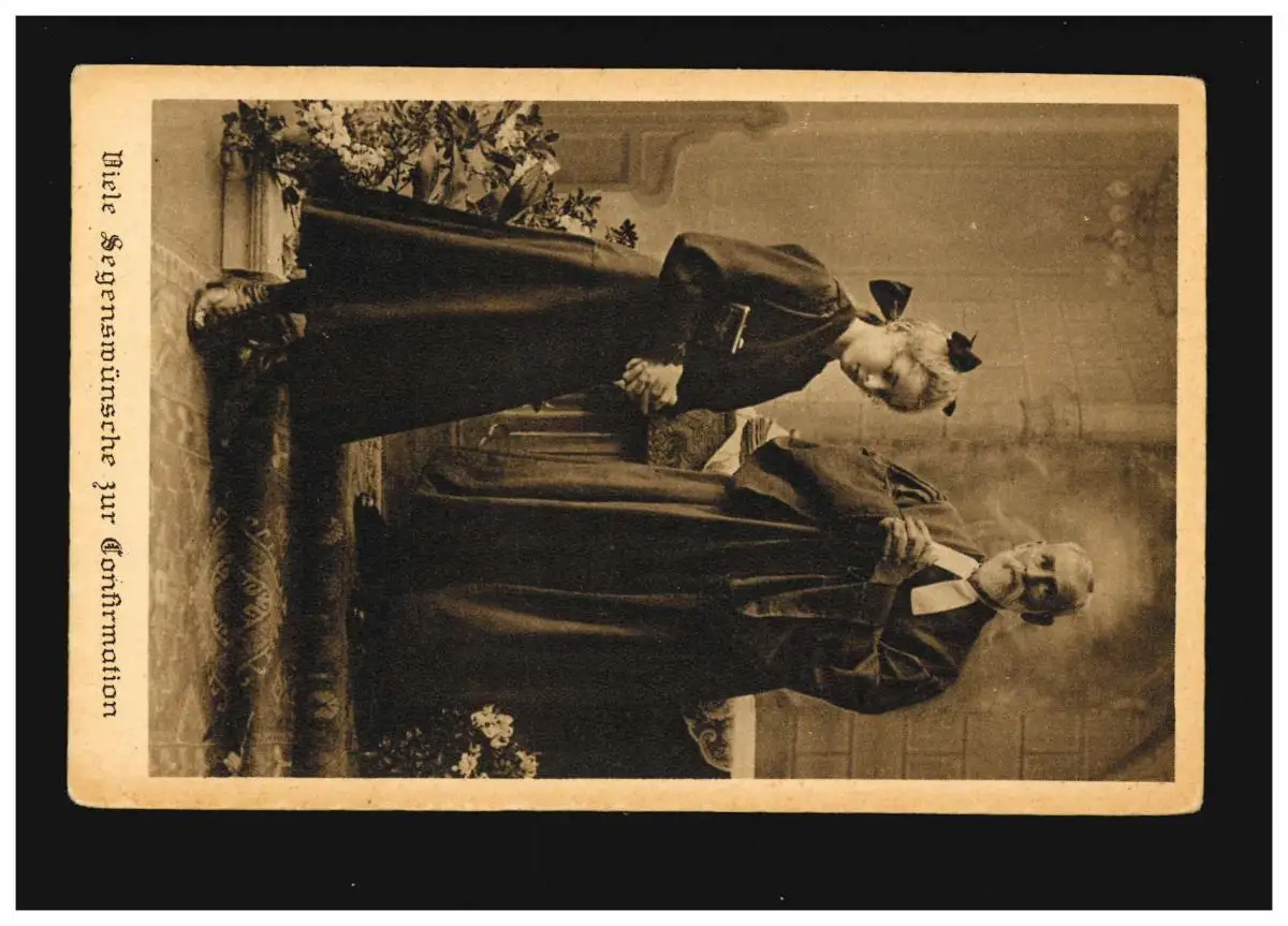 Konfirmation Segenschwünsche Pfarrer mit Mädchen vor dem Altar, ungebraucht