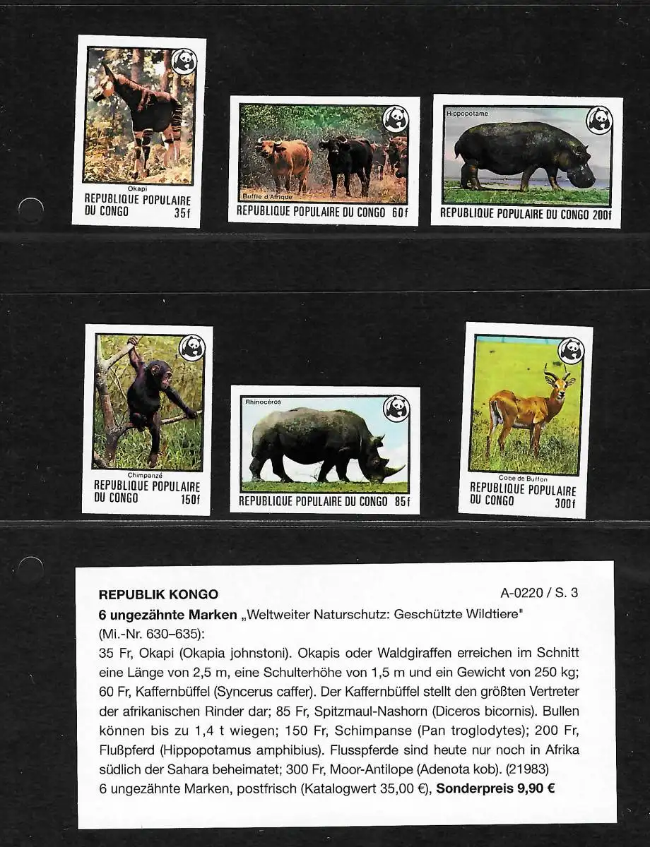 Kongo: 6 ungzähnte Marken: Wildtiere, Weltweiter Naturschutz im Albumblatt