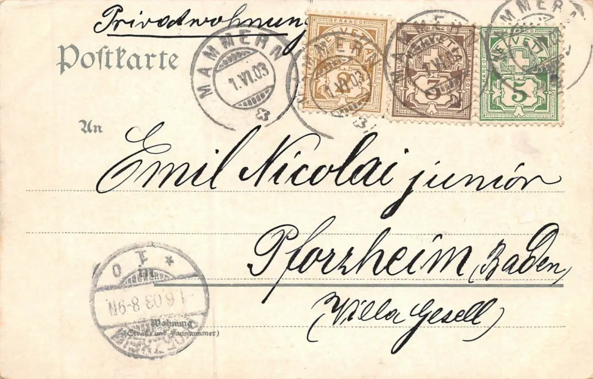 Rückseite: gelaufen 1903 von Mammern nach Pforzheim