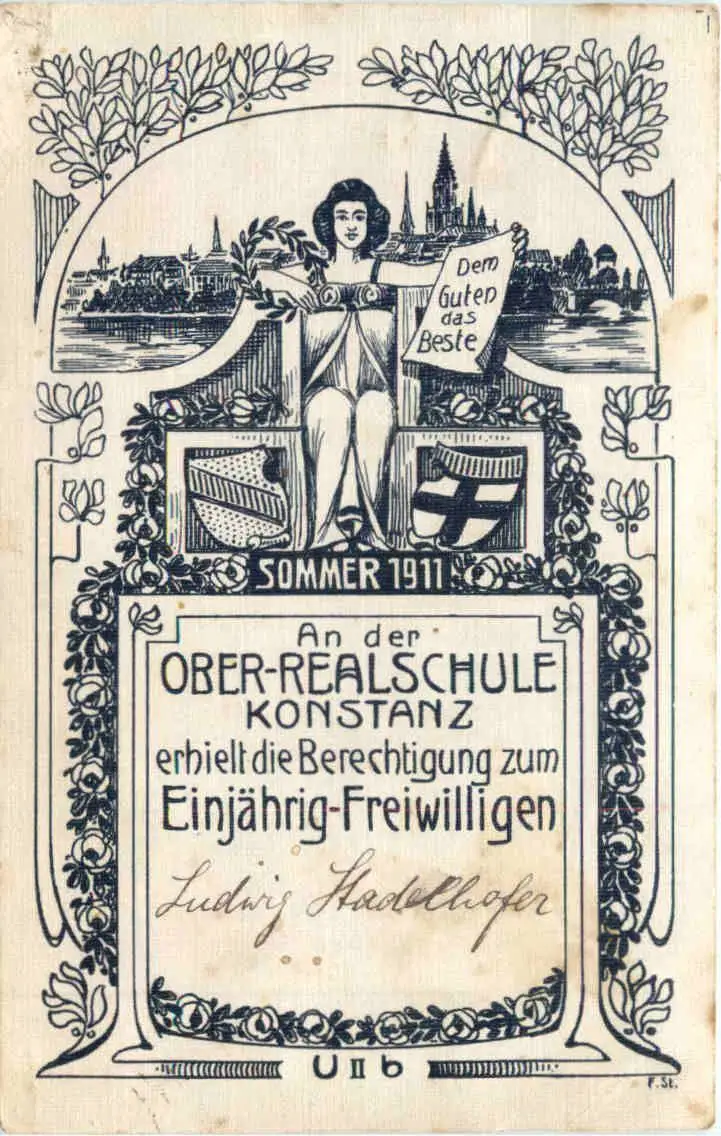 Konstanz - Ober-Realschule Einjährig Freiwilligen 1911 - Studentika -722128