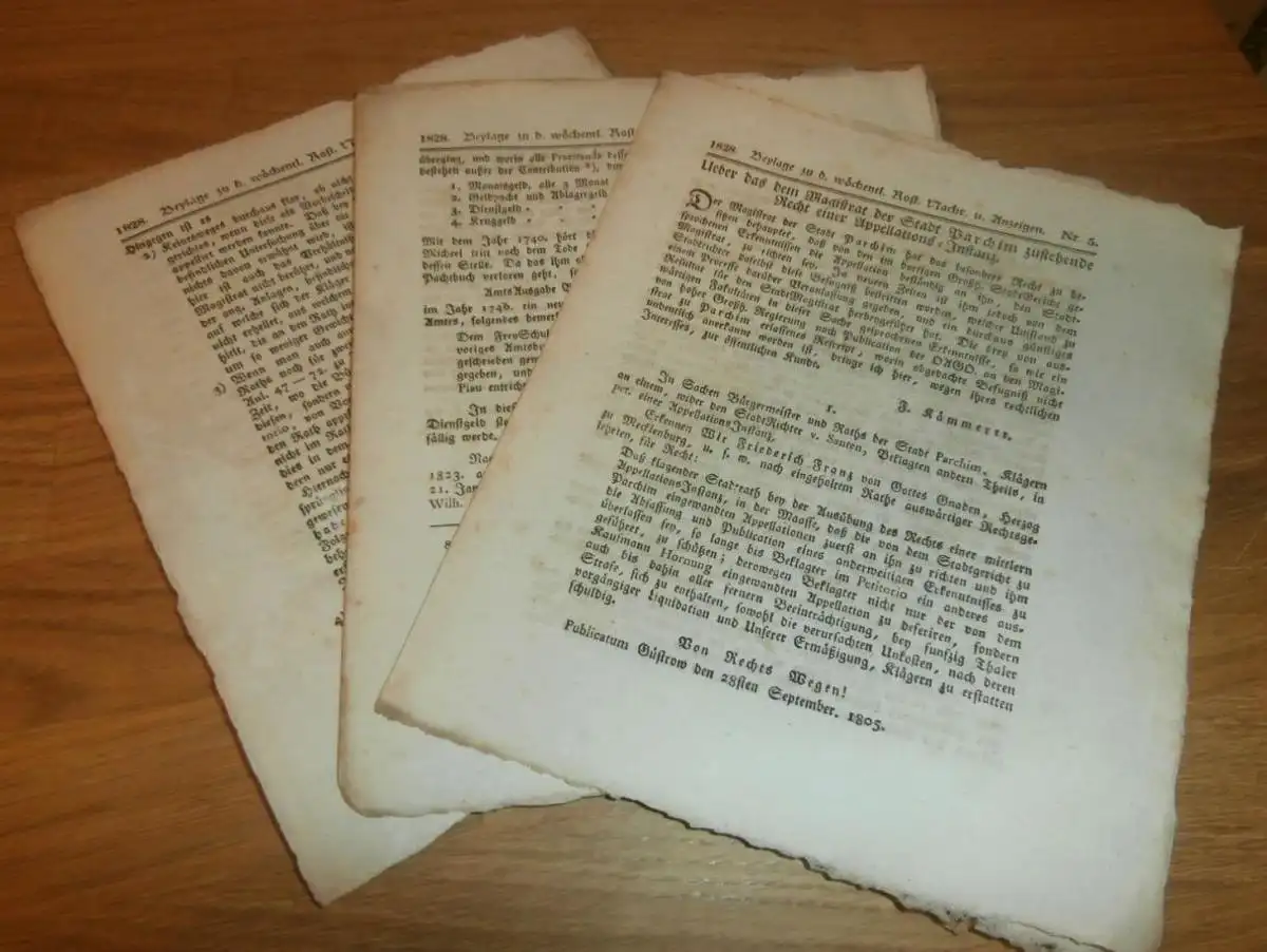 Konvolut Beylagen zu Rostocker Zeitung ,1828 , Stadt Parchim , Plau , Güstrow , Mecklenburg !!!AZ-Z/WR