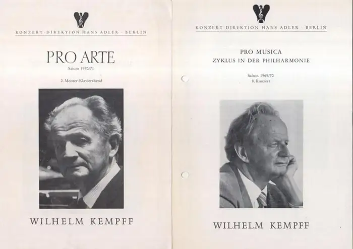 Konzert-Direktion Hans Adler, Berlin. - Wilhelm Kempff: Konvolut mit 2 Programmzetteln: Wilhelm Kempff in der Berliner Philharmonie 1970 und 1971. - Pro Arte / Pro Musica. - Mit Werken von Schumann, Schubert, Brahms.