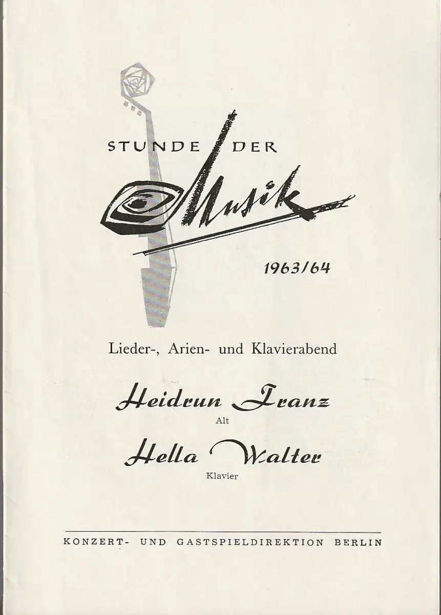 Konzert- und Gastspieldirektion Berlin: Programmheft STUNDE DER MUSIK 1963 / 64 LIEDER-, ARIEN- UND KLAVIERABEND Heidrun Franz / Hella Walter.