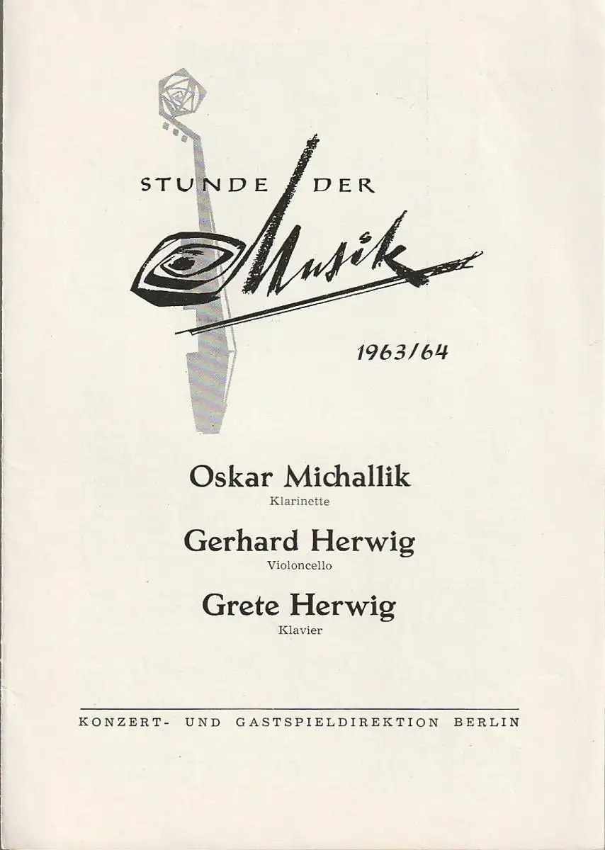 Konzert- und Gastspieldirektion Berlin: Programmheft STUNDE DER MUSIK 1963 / 64 Oskar Michallik / Gerhard Herwig / Grete Herwig.