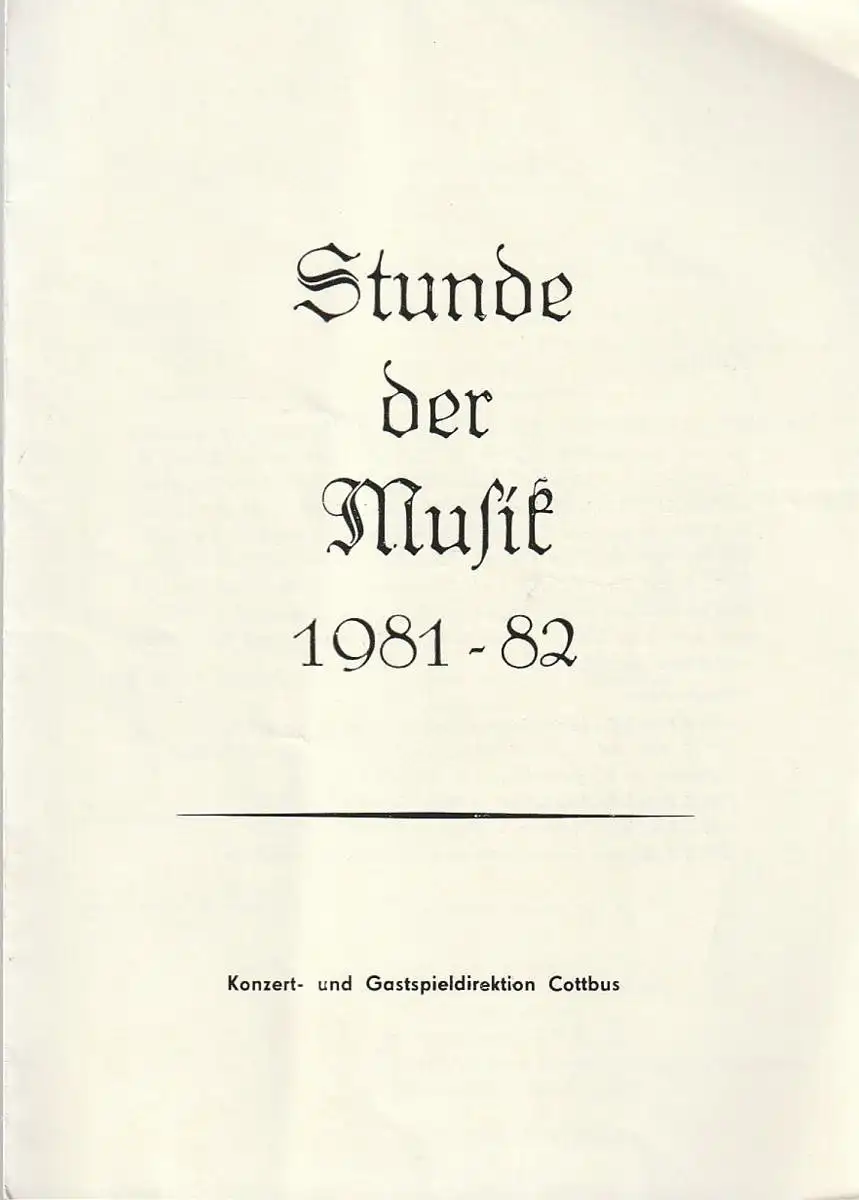 Konzert und Gastspieldirektion Cottbus, Siegfried Posselt: Programmheft STUNDE DER MUSIK 1981 -82 JUTTA SCHLEGEL Spielzeit 1981 / 82 Het 6.