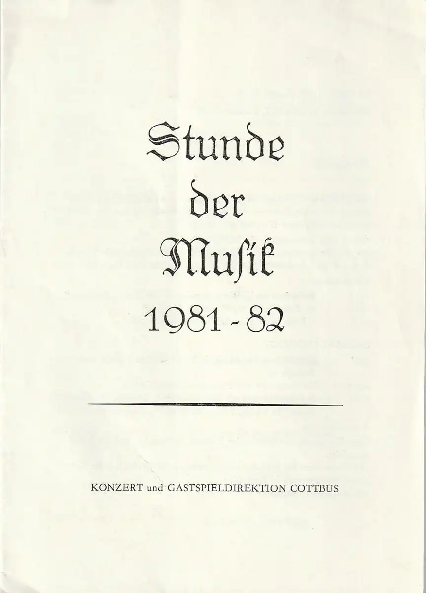 Konzert und Gastspieldirektion Cottbus, Siegfried Posselt: Programmheft STUNDE DER MUSIK 1981 -82 RAINER LUFT / MICHAEL STÖCKIGT Spielzeit 1981 / 82 Heft 14.