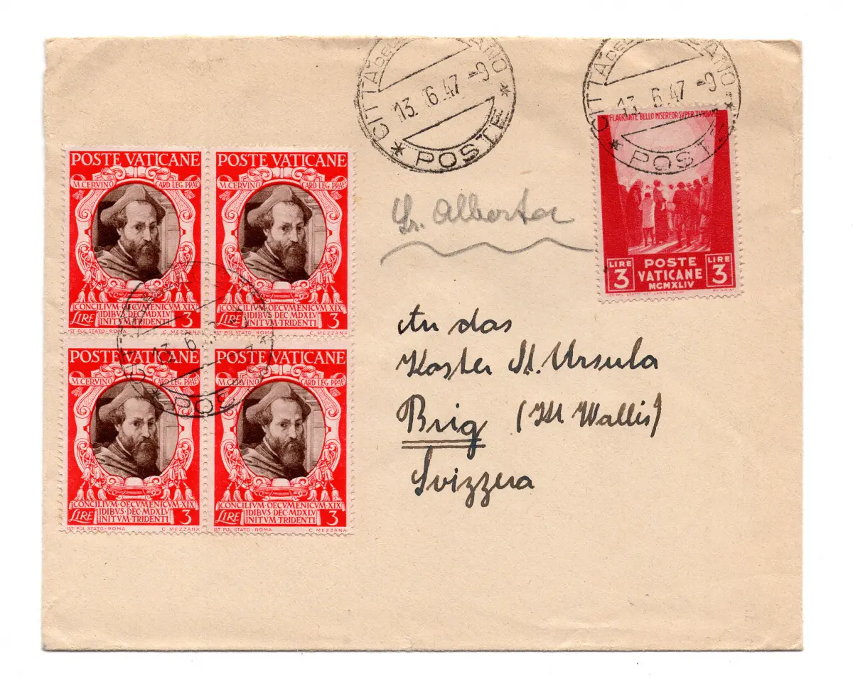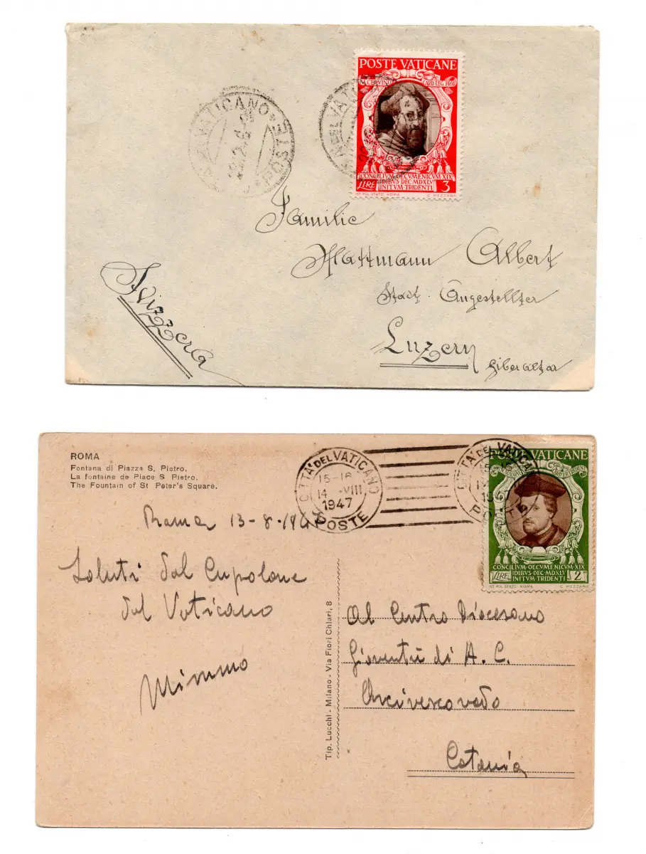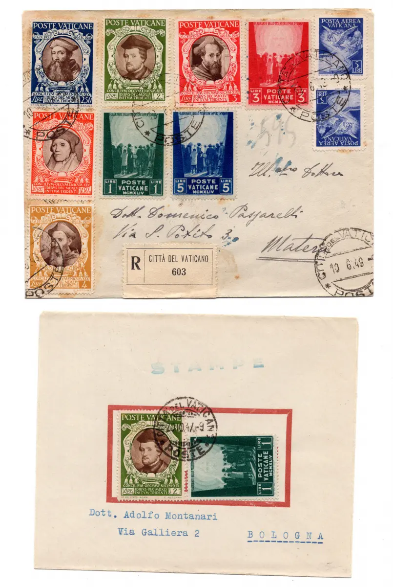 Briefumschlag - Konzil von Trient - Lot von neun frankierten Umschlägen oder Postkarten auch ins Ausland mit Werten dieser Serie auch im Mischgebrauch mit Zwillingswerten der Serie Gefangene - Schönes Set auch mit hochwertigen Tarifen - Für Posthistoriker Cod. 1010/17