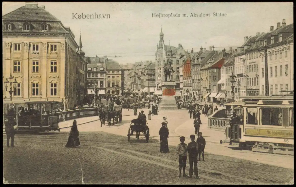 Kopenhagen København Højbroplads m. Absalons Statue, Tram Straßenbahn 1910
