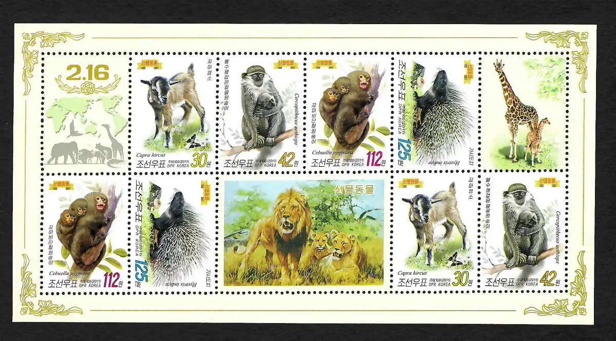 Korea: Geburtstag von Kim Jong-Im, Tierblock mit Wildtieren, postfrisch