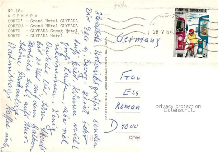 Korfu_Corfu Glyfada Hotel Strand Korfu Corfu postalisch gelaufen nach 1965 Erhaltung siehe scans [FriedD77] Frierer
