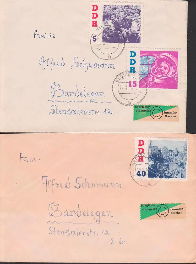 Kosmonaut German Titow, Besiuch in der DDR, 2 portogenaue Briefe dabei DDR Mi. 865
