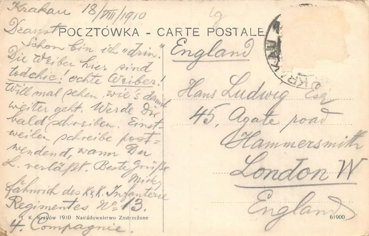 Rückseite: gelaufen von Krakau