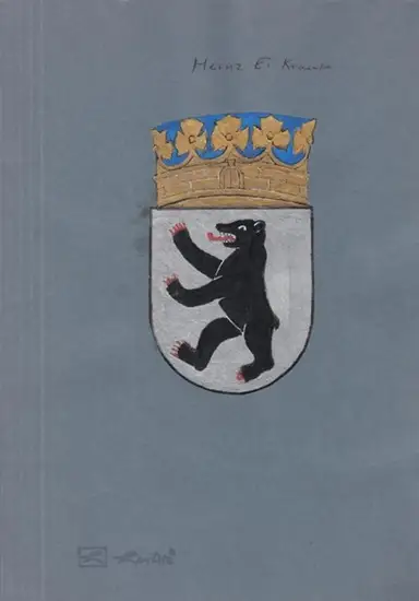 4°. Einfacher Papp-Schnellhefter mit handcoloriertem Berlin-Wappen und handschriftlichem Autorennamen auf dem Vorderdeckel. Innen mit Leinenstreifen eingebunden: Titelblatt (ebenfalls mit handgemaltem Wappen sowie kleinem Adress-Etikett des Autors) und 17 (1) Seiten, davon 8 Seiten Text in Maschinenschrift und 5 Tafeln mit insgesamt 44 Stadtteils-Wappen, davon wurden 43 handkoloriert. Das Wappen für Hellersdorf ist nicht bearbeitet worden. Auf Seite 15 ist ein Wappenumriss frei geblieben. Im vorderen Innendeckel eine Berlin-Postkarte mit dem Datum der Wiedervereinigung. Gut erhaltenes Unikat
