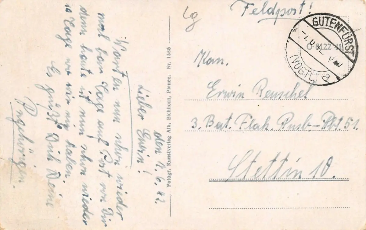 Rückseite: gelaufen 1942 von Gutenfürst (Vogtl.)