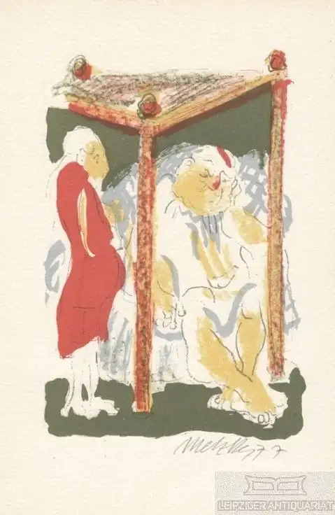 Bemerkungen: Zustand: Schönes sauberes Blatt // In 4 Farben, auf hartem Maschinenbütten, unten rechts signiert und datiert. Kunstgrafik. Druckgröße: 16 x 11 cm, Metzkes, Harald. ( Metzkes, Harald. ( 1929 Bautzen, lebt u. arbeitet in Wegendorf bei Berlin)
