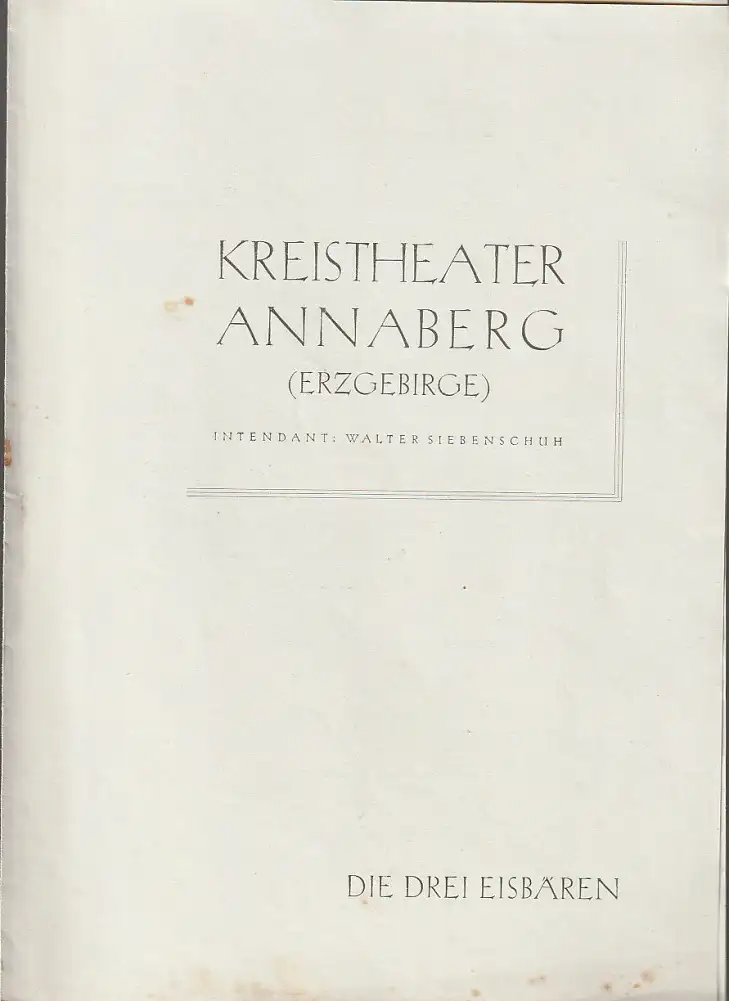 Kreistheater Annaberg Erzgebirge, Walter Siebenschuh: Programmheft Maximilian Vitus DIE DREI EISBÄREN.
