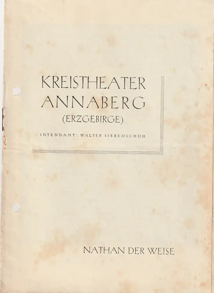 Kreistheater Annaberg Erzgebirge, Walter Siebenschuh, Waldo Schubert: Programmheft Gotthold Ephraim Lessing NATHAN DER WEISE Spielzeit 1954 / 55 Nr. 2.