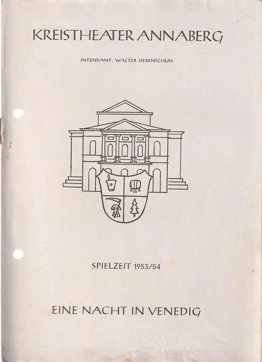 Kreistheater Annaberg, Walter Siebenschuh: Programmheft Johann Strauß EINE NACHT IN VENEDIG Spielzeit 1953 / 54.