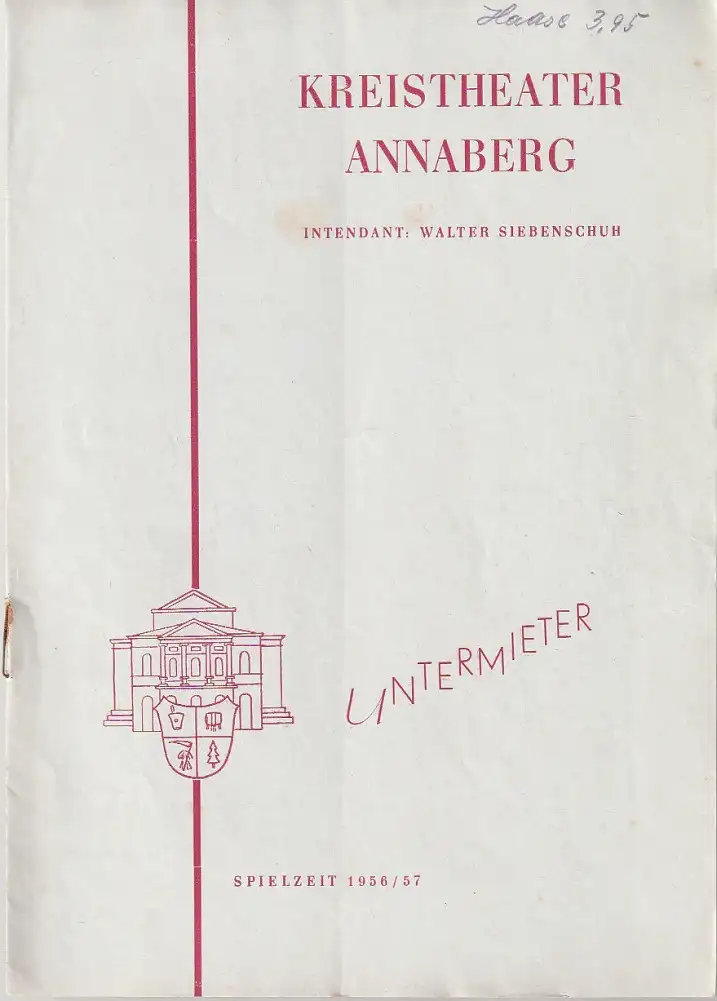 Kreistheater Annaberg, Walter Siebenschuh, Ursula Boock, Kurt Schwabe ( Zeichnungen ): Programmheft Wieland / Schreiber UNTERMIETER Spielzeit 1956 / 57 Nr. 17.