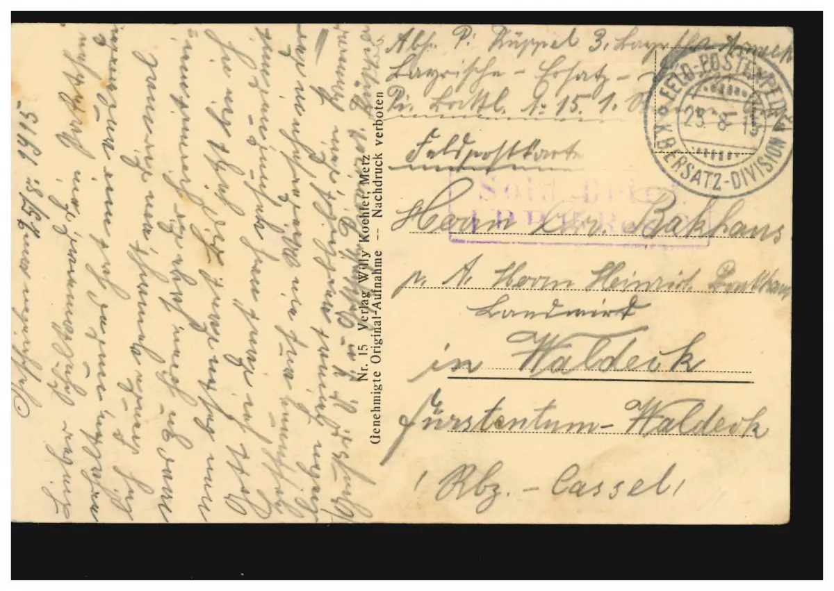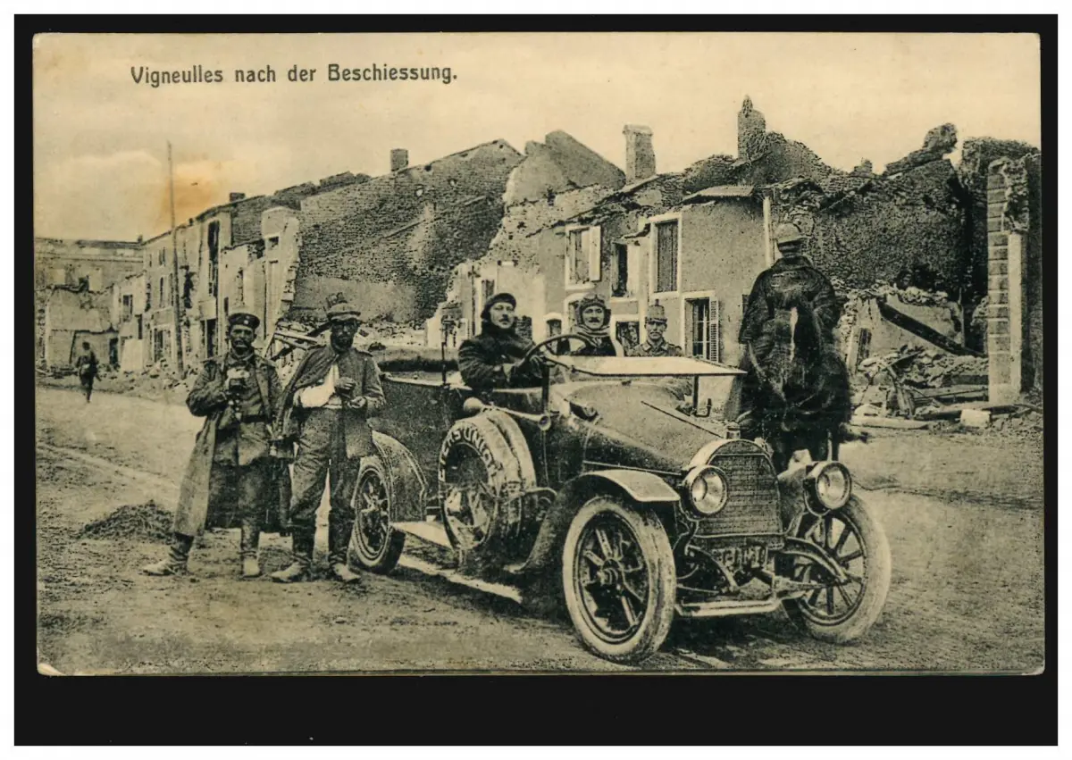 Krieg-AK Vigneulles nach der Beschießung, Feldpost K.B.Ersatz-Div. 25.8.1915