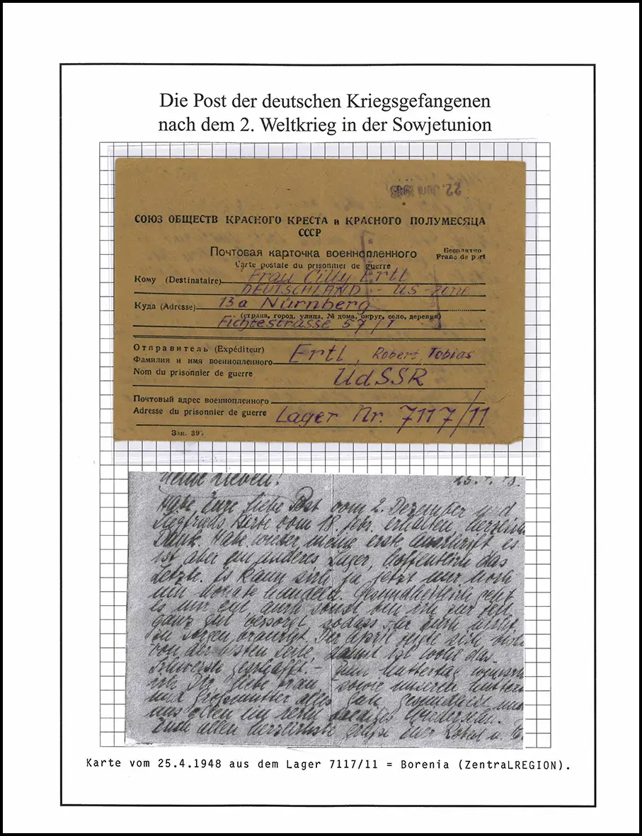 Kriegsgefangenenpost Lager 7117/ 11 Gorki UdSSR nach Nürnberg vom 25.4.1948