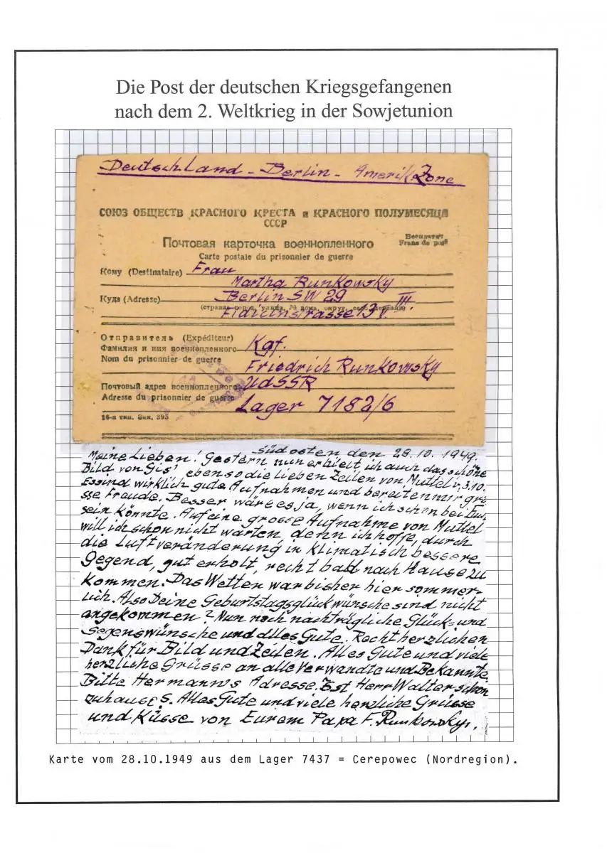 Kriegsgefangenenpost Lager 7437 Tscherepowez UdSSR Berlin (US Sektor) 28.10.1949