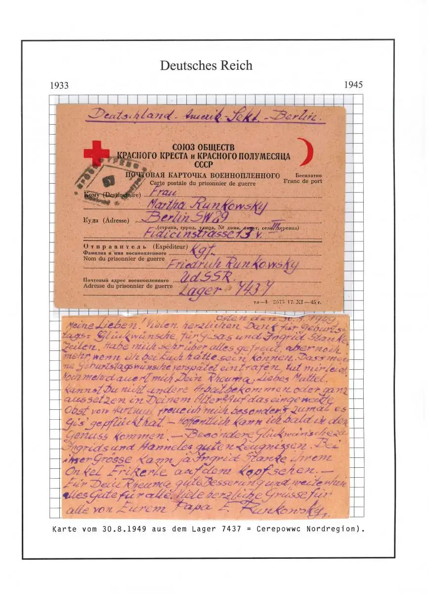 Kriegsgefangenenpost Lager 7437 Tscherepowez UdSSR Berlin (US Sektor) 30.8.1949