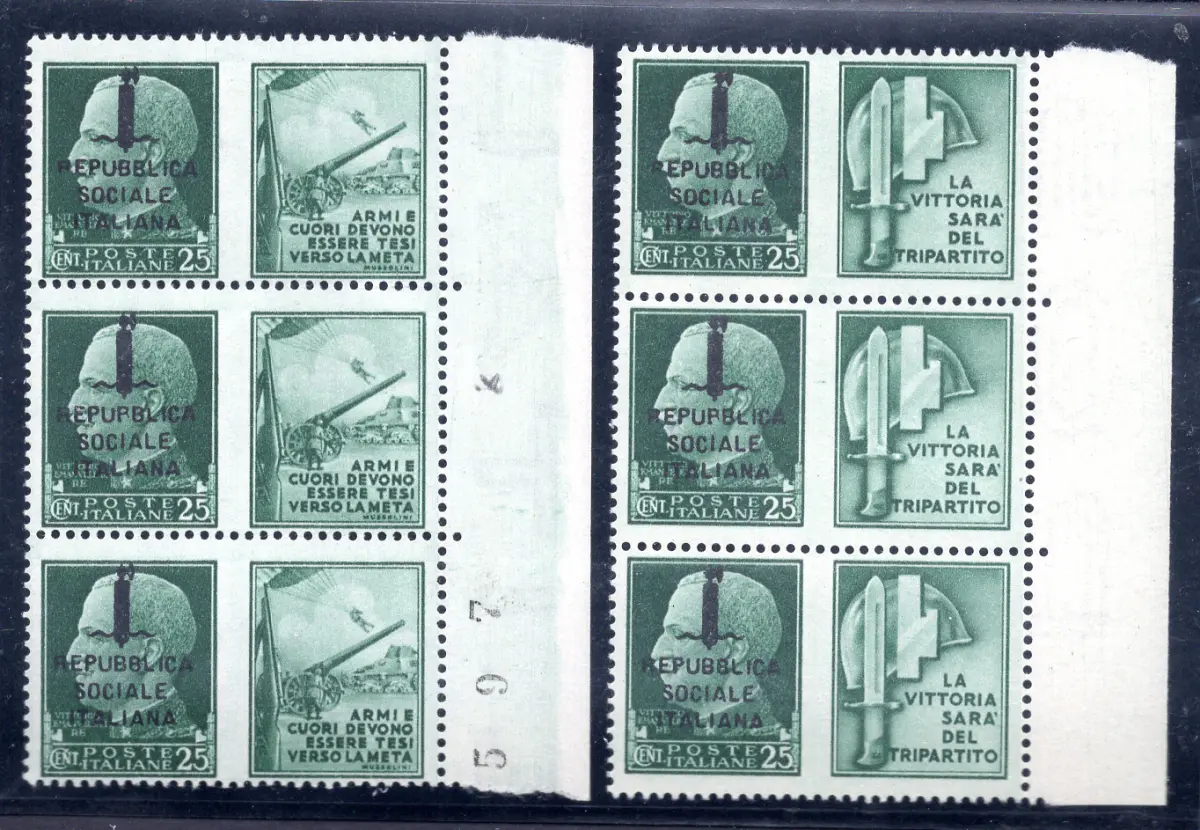 MNH - VOLLGUMMI - Kriegspropaganda Cent. 25 n. 26h und 28h zwei Werte im vertikalen Streifen von drei Exemplaren Blattrand, das Exemplar in der Mitte mit Druckfehler Repubblica neuer perfekter Vollgummi - Schönes Set Euro-Katalog? Cod.2399/WEB