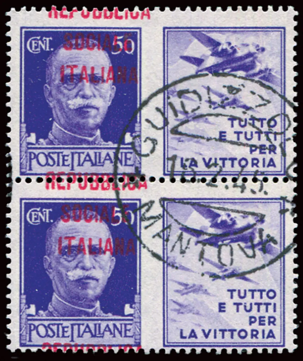 Gebraucht - Kriegspropaganda Cent. 50 Nr. 35 Paar mit stark vertikal verschobenem Aufdruck Republik zu Pferd - gebraucht Ann. Führung nicht garantiert Cod. 225/15