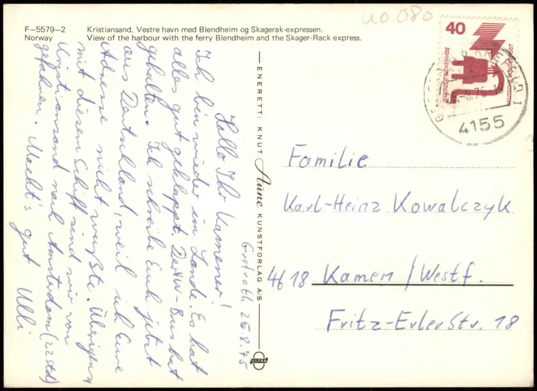Kristiansand S Christianssand Hafen Scchiff Skagerak-expressen. 1975