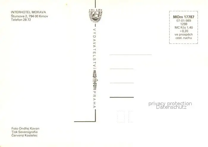 Krnov Interhotel Morava Restaurant Bar Krnov postalisch nicht gelaufen nach 1965 Erhaltung siehe scans [FriedD77] Frierer