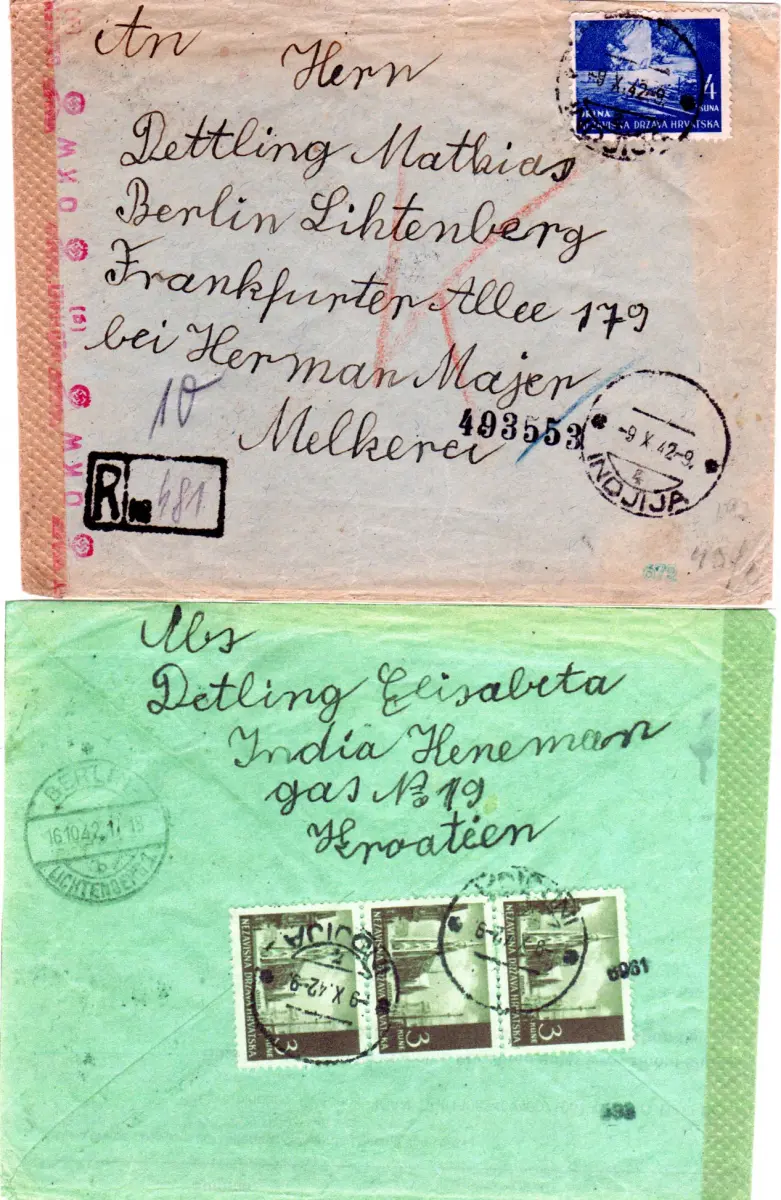 Kroatien 1942, 4+rücks. 3x3 K. auf Einschreiben Brief v. Indjina m. OKW-Zensur