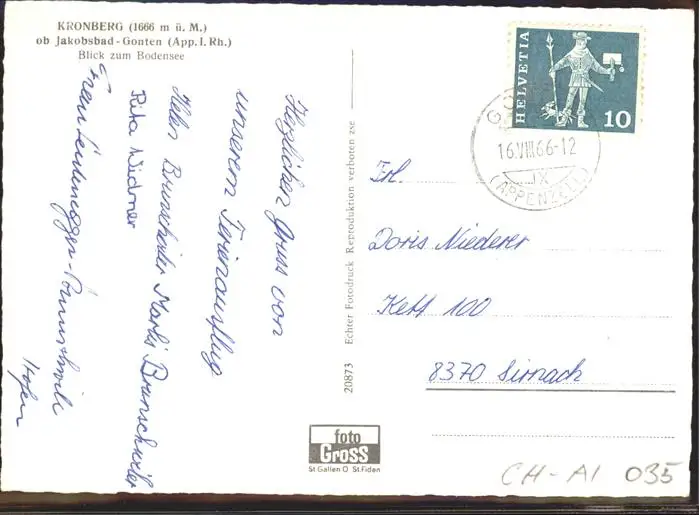 Kronberg Saentis Ganten Bodensee Kronberg postalisch gelaufen 1966 gute Erhaltung Alte Ansichtskarte Postkarte Stefaufe