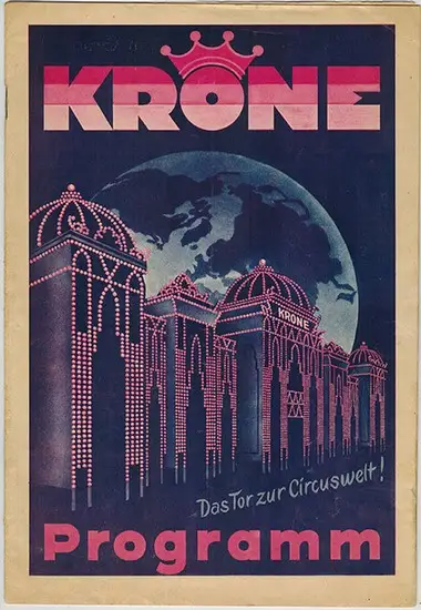 Krone Programm. Das Tor zur Circuswelt! Ohne Ort [Berlin - Neukölln], Circus Krone - Oskar Beigat (Druck), ohne Jahr [1931 oder wenig später].