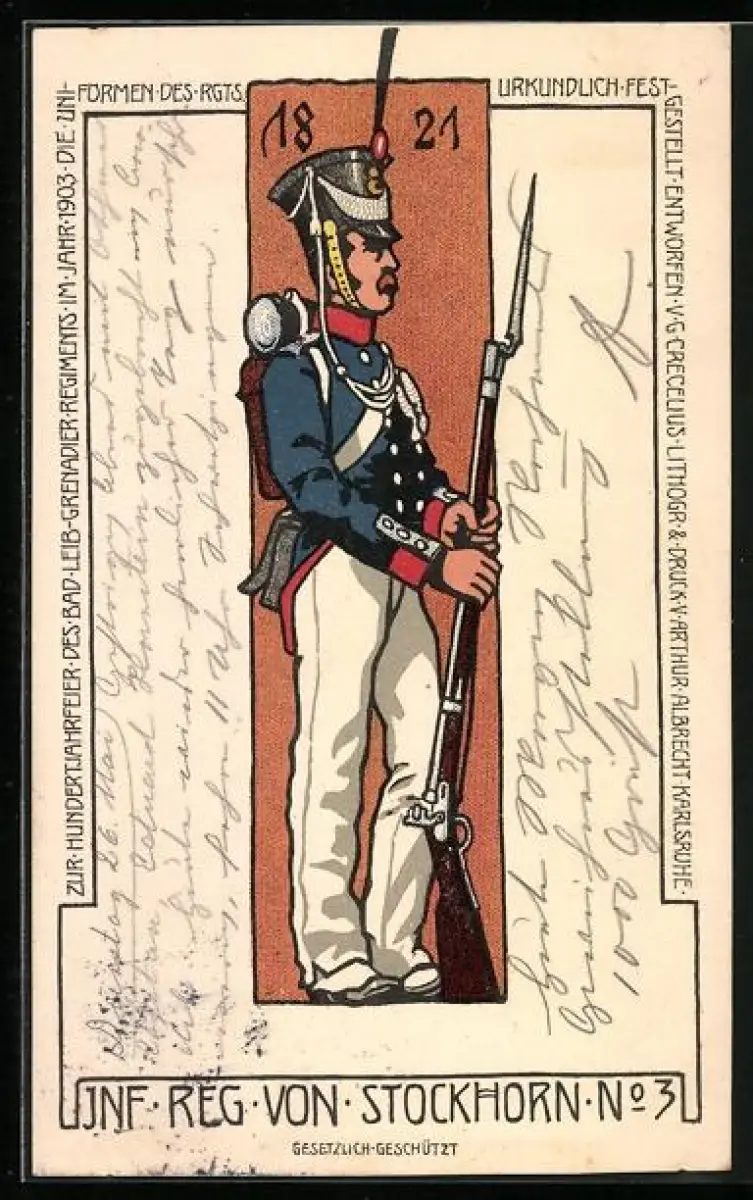 Künstler-AK 100. Jubiläum des Bad. Leib-Grenadier-Regiments 1903, Inf. Reg. von Stockhorn No. 3