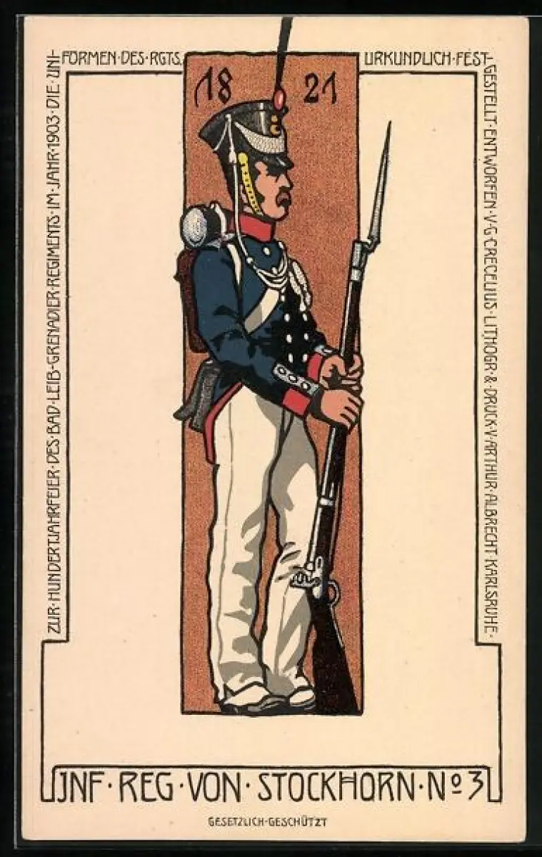 Künstler-AK 100. Jubiläum des Bad. Leib-Grenadier-Regiments 1903, Inf. Reg. von Stockhorn No. 3