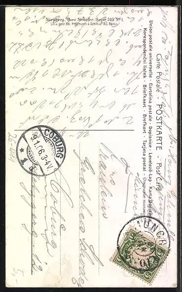 alte Ansichtskarte, gelaufen 1906, Abriebspur re. unten, guter Zustand