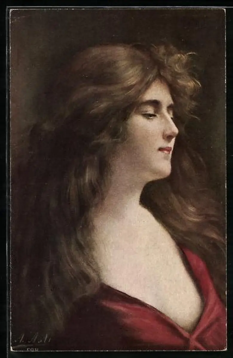 Künstler-AK A. Asti: Reflexion, Porträt junge Frau